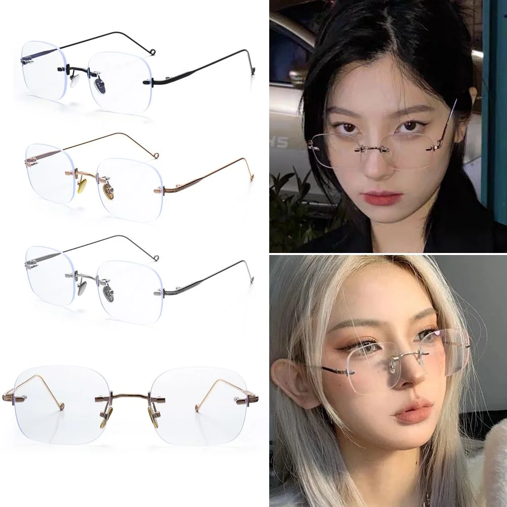 Gold Silver Square Glasses Metal Clear Eyeglasses Frameless Eyewear Zero Diopter Glasses Transparent